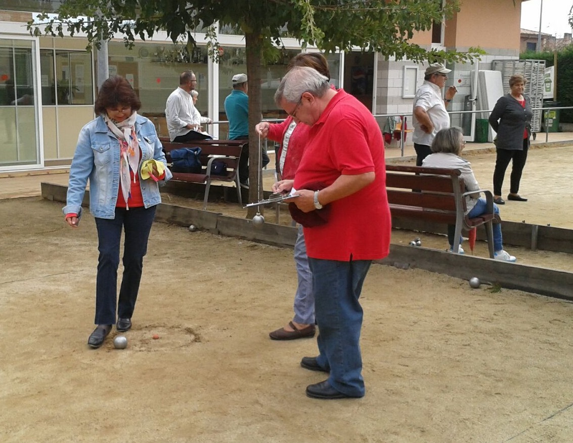 14.10.2015 13:53Al llarg del matí del dia 12 d'octubre de 2015 es va celebrar aquesta doble competició en les pistes del nostre club de petanca Pla de l'Avellà. Ha estat una activitat orientada a la millora tècnica en la pràctica de l'esport. L'excel·lent planificació i organització del concurs ha anat a càrrec de la comissió esportiva i, especialment, d'en Gabriel Garcia, cap i ànima d'aquest esdeveniment, l'objectiu del qual és la millora del nostre nivell de petanca. El clima va ser molt cordial en tot moment. Vam començar cap a les 9 hores amb un suculent esmorzar preparat per Roser, Quima i Maite. A continuació es van fer el campionat d'apuntadors i el de tiradors, amb tres fases i dues distàncies diferents en ambdós casos. Una vegada que es va fer el recompte de puntuacions, el presi del club -en Gerard Castanyer- va fer el lliurament de premis i records de participació. El primer classificat en la modalitat d'apuntadors va ser en Toni Campamà i la segona Montse Falgueras. En quant al tir també va resultar guanyador Toni, sent el segon classificat en Dani. Felicitacions al gran triomfador de la jornada, en Toni Campamà, i a tots els participants. FINS L'ANY VINENT!